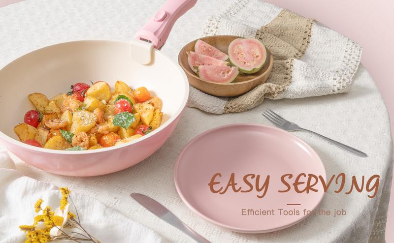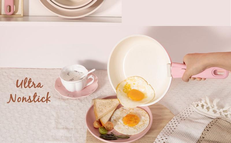 Equipped with a ceramic health coating, this set ensures durability and performance. It's easy to clean and free from harmful chemicals like PFOA, providing a healthier cooking experience. The nonstick surface resists stains and makes cleanup effortless.