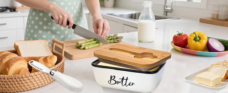 Elegant Butter Dish with Lid and Curler Knife - Double Silicone Sealed Container for Fresh, Spreadable Butter - Perfect Kitchen Decor and Gift